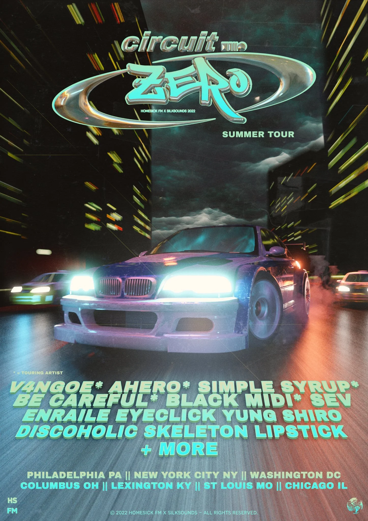 Homesick FM and Silksounds present: the Circuit Zero summer 2022 tour! Ahero, Be Careful, Black Midi, Simple Syrup and V4ngoe are hitting the east coast and midwest, to be joined at various stops by many of your other favorite producers! Ticket links coming soon. Be there!