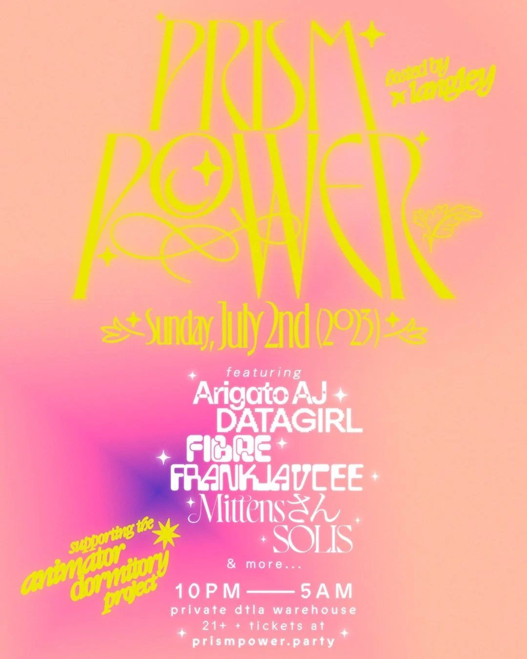 Prism Power Party Sunday, July 2, 2023 10:00 PM Monday, July 3, 2023 5:00 AM Google Calendar ICS 21+ tickets here